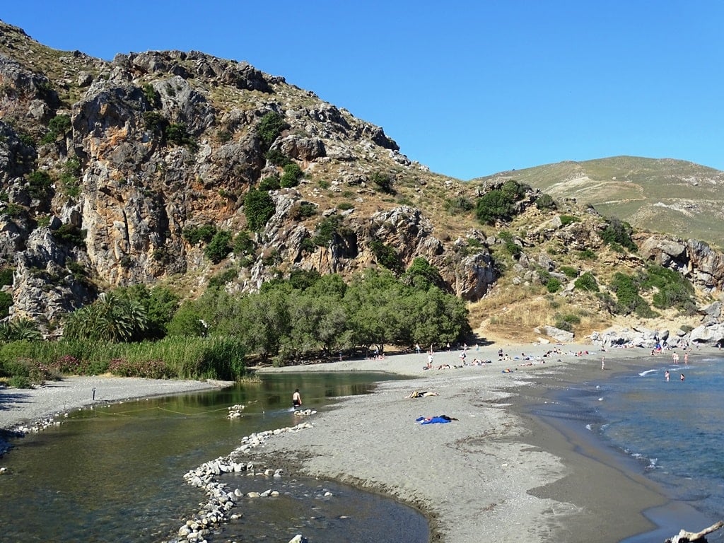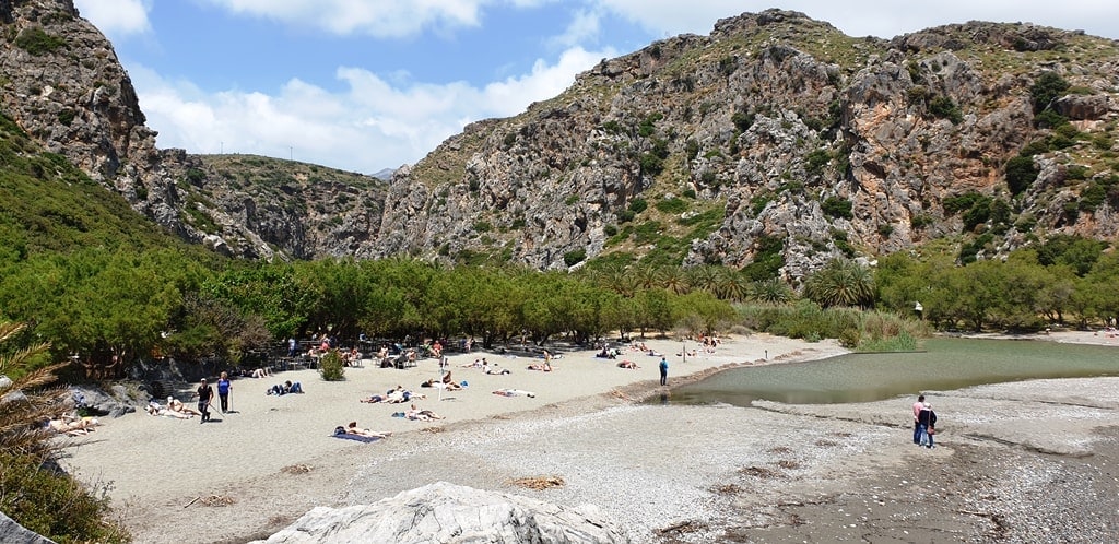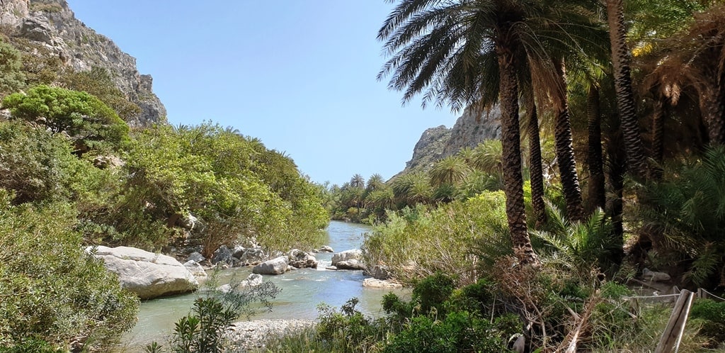 Immerse yourself in the stunning beach with palm trees and explore the Kourtalioti Gorge.