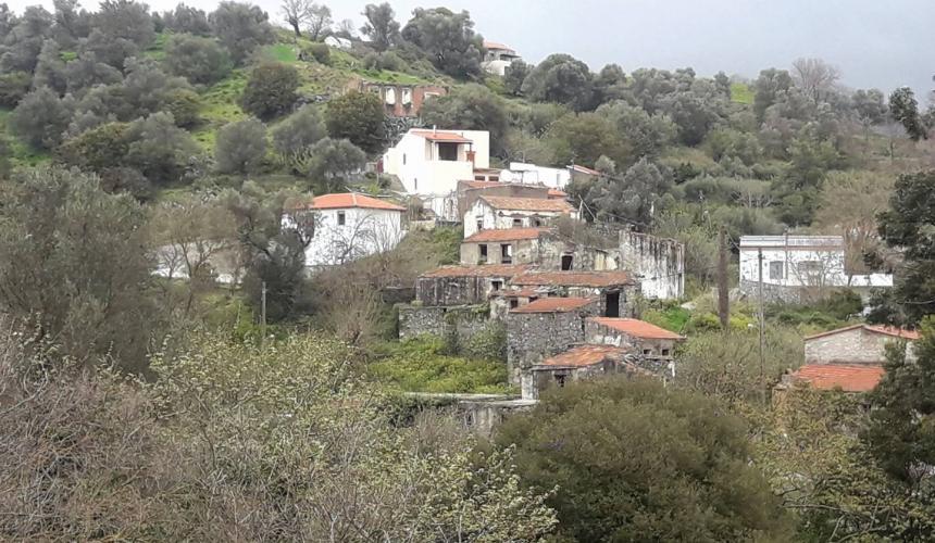 Entering Upper Mixorrouma from the side of Rethymno, there is a right turn that leads to Agia Pelagia at 300 meters and Fratti at 3 kilometers.